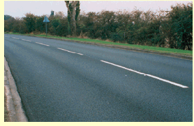 The centre of the road is usually marked by a broken white line, with lines that are shorter than the gaps. When the lines become longer than the gaps, this is a hazard warning line. Look well ahead for these, especially when you're planning to overtake or turn off.