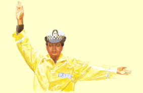 Police officers may need to direct traffic; for example, at a junction where the traffic lights have broken down. Check your copy of The Highway Code for the signals that they use.