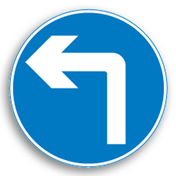 Blue circles tell you what you must do and this sign gives a clear instruction to turn left ahead. You should be looking out for signs at all times and know what they mean.