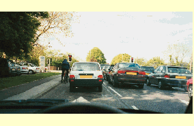 If you're waiting at traffic lights, check all around you before you move away, as cyclists often filter through waiting traffic. Allow the cyclist to move off safely.
